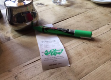 Waiter: Sign here please.
