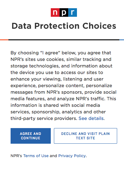 I don’t know about you, but from the above quote, I’m kinda OK with what the EU is attempting to do. The LA Times, on the other hand, has chosen to NOT make its website available to me–and not just because I’m on the Interwebnets in Germany/EU (see NPR example in pics above). The reason the LA Times isn’t available is because the LA Times can’t have a fcuking website where it doesn’t turn users (consumers) into products. The EU regulation protects me from being a sellable product by the LA Times. It really is that simple. Unfortunately TWIT.TV is yet another example of how #Americant media can almost never get it right. And forget about fake news, don’t you know. To decry that the EU, in its attempts to protect Internet users (consumers) from piranhas like the LA Times and its advertising bull$hit-galore… Well… Fcuk the LA Times.