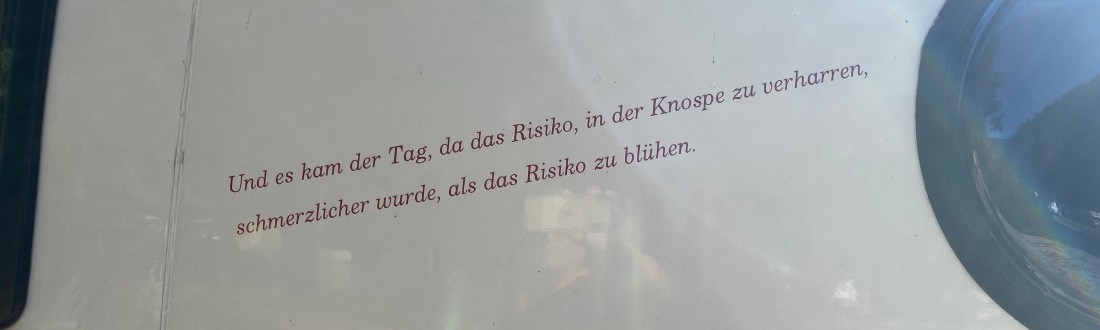 And the day came when the risk of remaining in bud became more painful than the risk of blooming. -Anais Nin; translation help by deepl.com